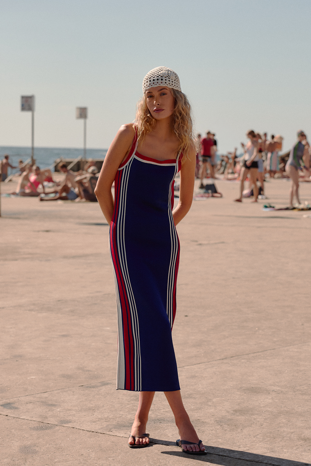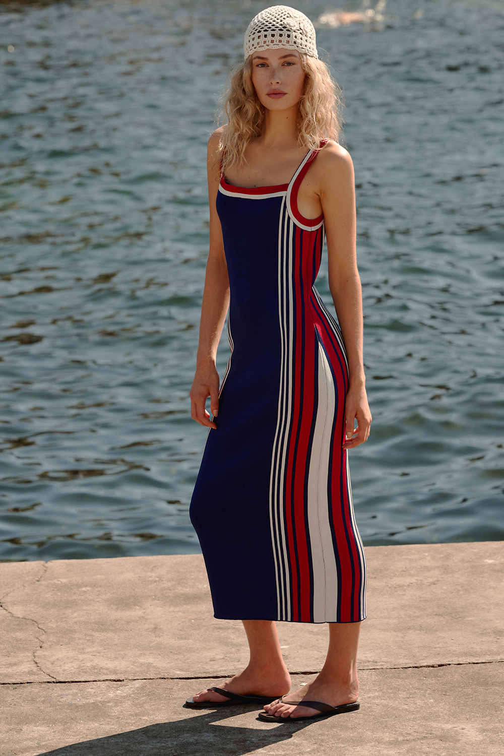 The Alexa Knit Dress is a sophisticated midi-to-ankle-length style featuring a fitted silhouette and classic square neckline. Knit fabrication, this slip-on dress features a navy, red and white stripe panel and is designed to run true to size for a snug, flattering fit. A chic transeasonal piece for your wardrobe.