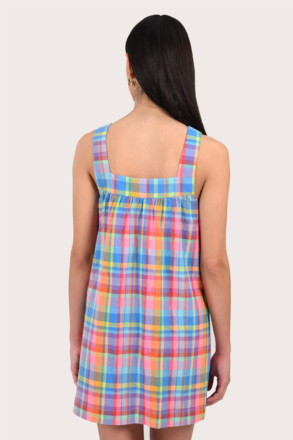The Marisol Mini Dress in Rainbow Check is a mini sundress with endless wearability. Featuring a square neckline and a floaty shift silhouette, pair it with a sandal or ballet flat for sun-drenched days and balmy evenings.
