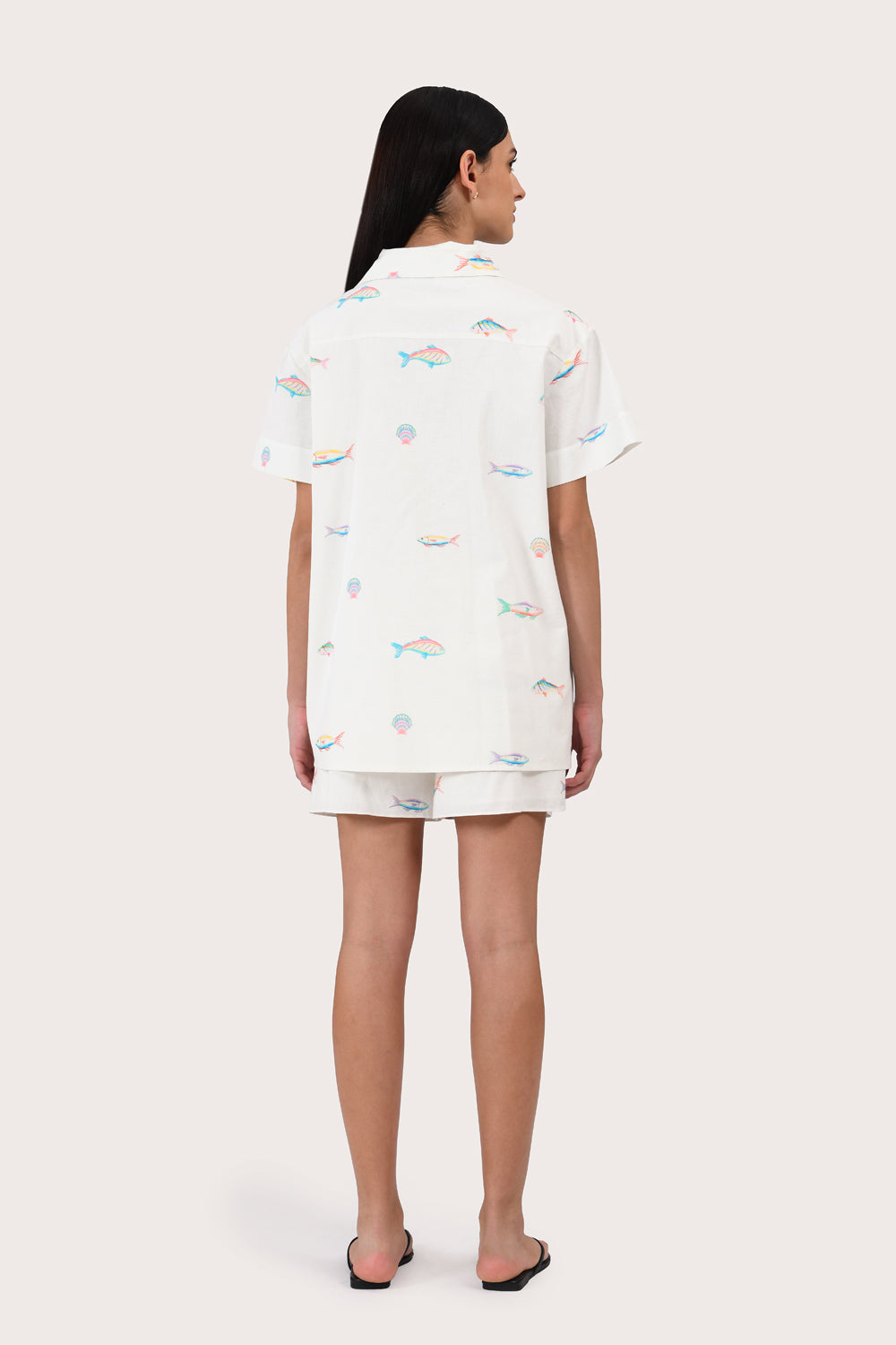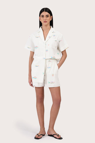 The Ophelia Short in Ivory is a relaxed warm-weather staple featuring a comfortable elasticated waistband. Crafted from breathable cotton flex, this unlined style includes functional side pockets. Pair with the Celeste Shirt for an effortless, matching resort set.