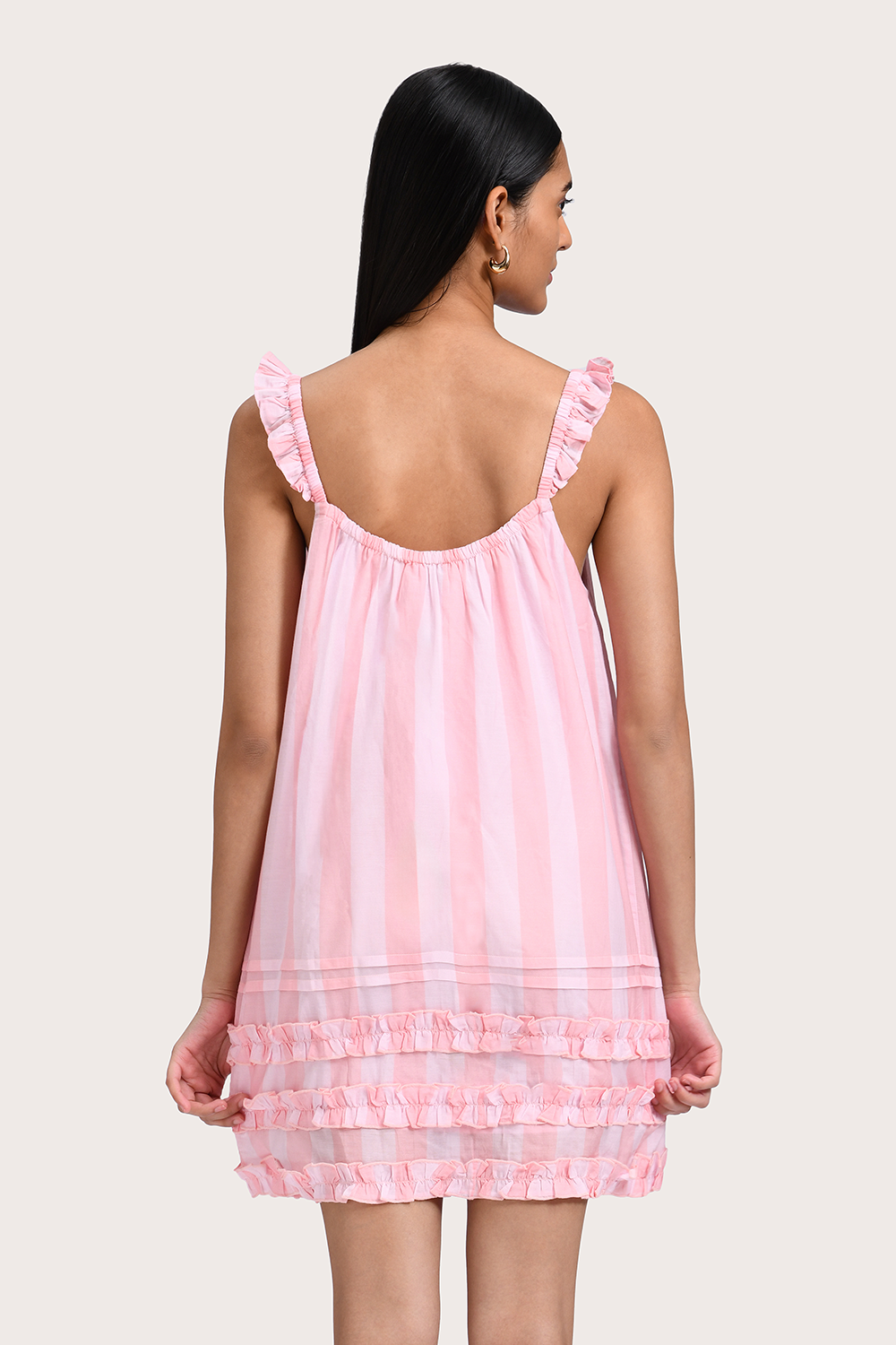 Our Alisa Mini Dress is updated in a fresh pink colourway and features a relaxed fit and textural fabric, shaped with frilled details and light straps. An easy cotton mini made for warm-weather wear.