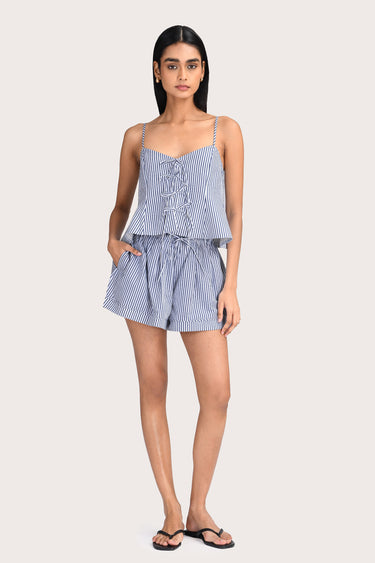 The Iris Shorts feature a mid-waisted tailored fit with a flattering leg opening, elasticated waistband and drawstring. Crafted from 100% cotton, these unlined shorts are finished with side pockets for everyday functionality. Style back with the matching Iris Cami for a coordinated daytime look.