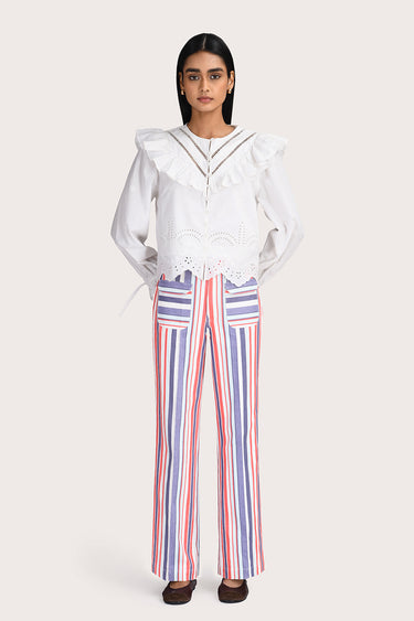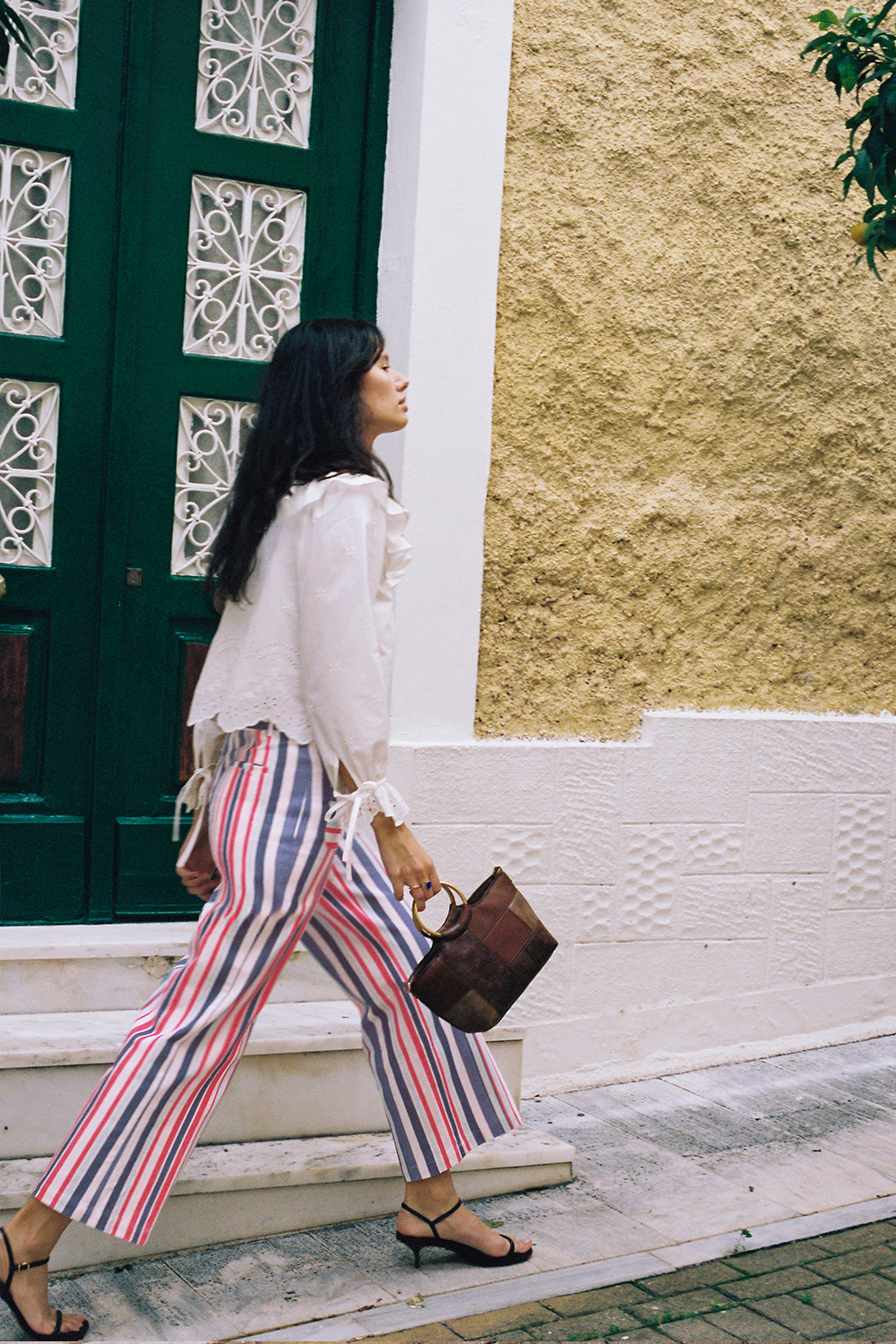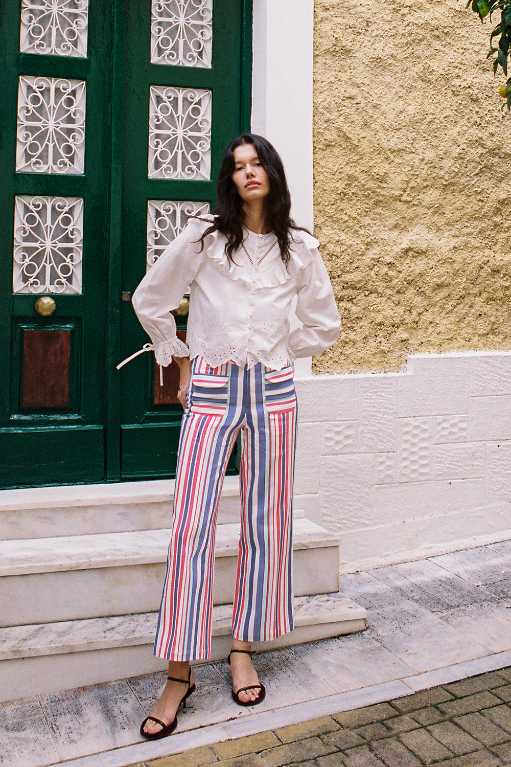 The Livia Pant in Ikaria Stripe is a fresh take on relaxed tailoring with its high-waisted, wide-leg silhouette. Featuring practical front patch pockets, these cotton twill pants provide a structured yet comfortable fit. Pair it with the matching Corina Shirt or a tank for an easy daytime look.