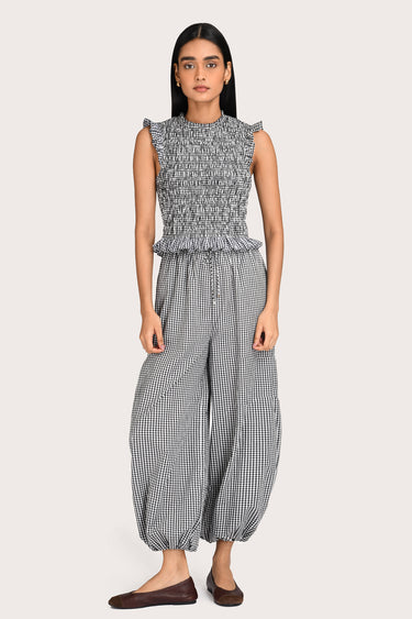 The signature Alexis Pant returns in a timeless noir gingham, offering a contemporary balloon leg silhouette designed for ease. Pair it with the matching Coco Top for a polished, coordinated look, or style it with your favourite tee for a more casual vibe.