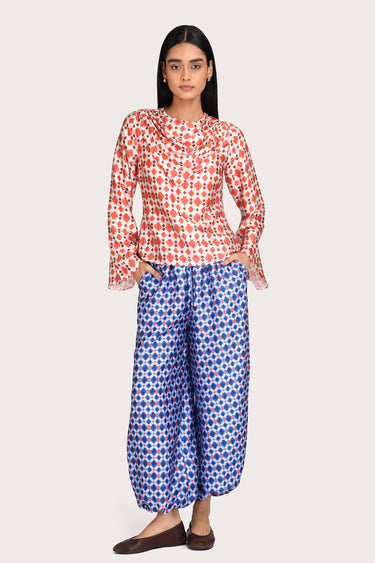 The signature Alexis pant is reimagined in sapphire, offering a distinct balloon leg silhouette for modern movement. Style with the Anisa blouse for a bold co-ord or your favourite tee for effortless yet elevated dressing.
