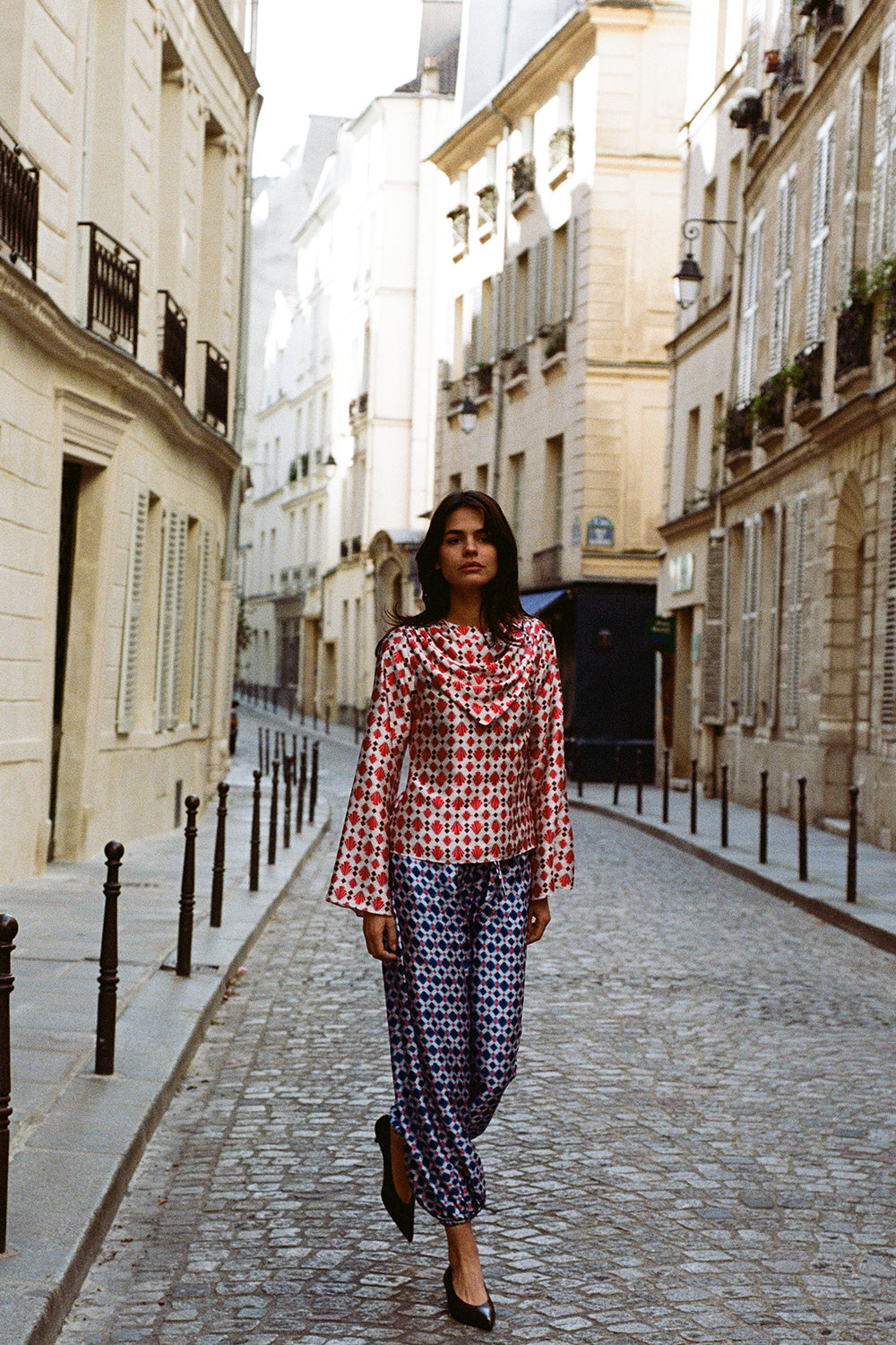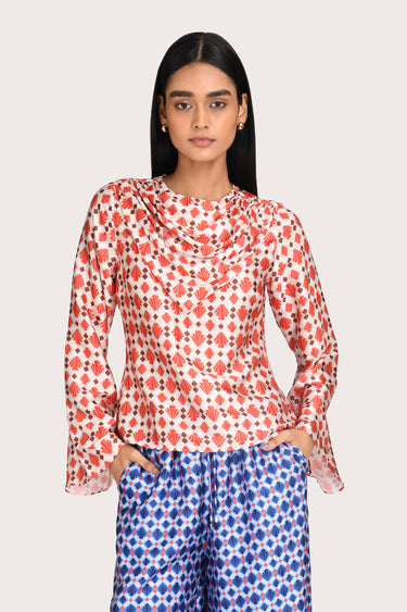 The Anisa Blouse in Marigold embodies understated elegance with a modern, fluid sensibility. Designed with a softly draped cowl neckline and elongated sleeves, it offers a refined silhouette. Featuring a tailored sleeve with a flared cuff and a relaced fit. It pairs perfectly with the Alexis pant in sapphire for a bold set moment or with your favourite denim to elevate your everyday.