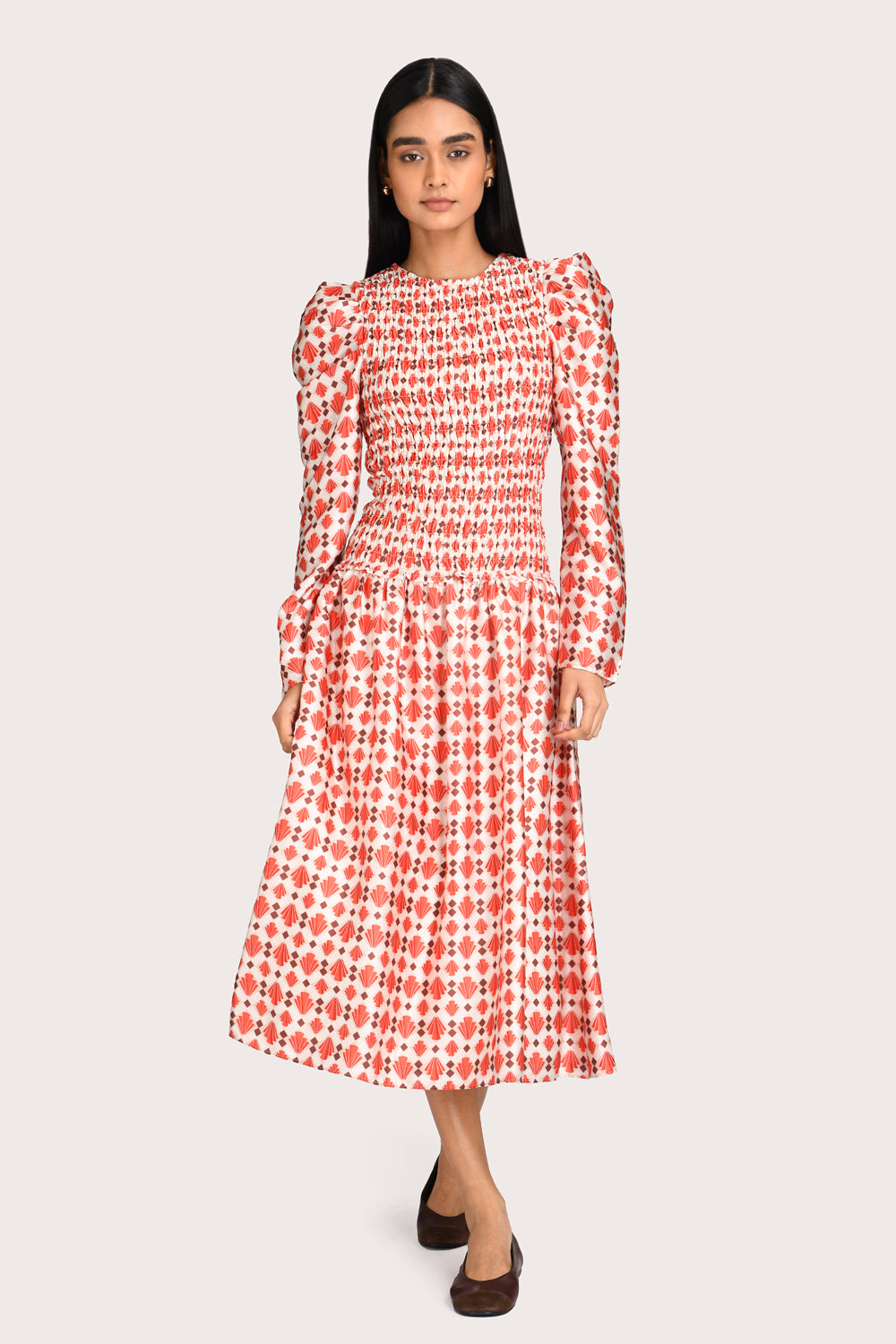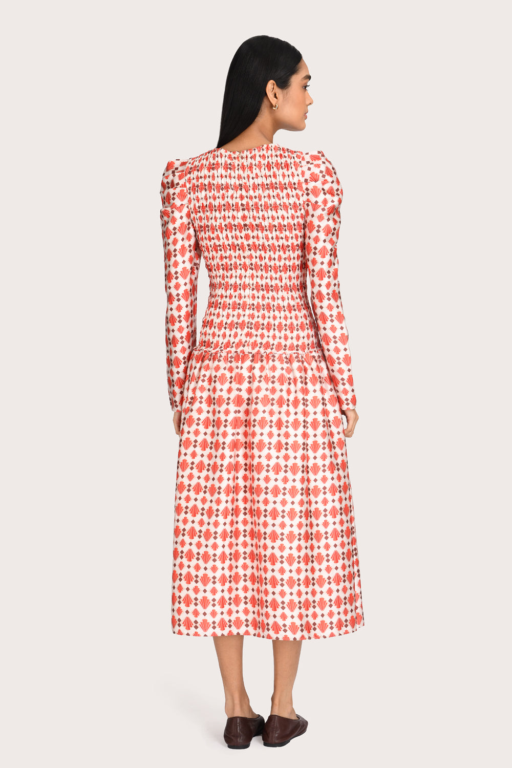 A beloved Steele silhouette returns in a warm Marigold palette; the Clea Dress features an intricate smocked bodice, long sleeves and a contemporary drop-waist midi skirt. Pair with ballet flats or a boot for trans-seasonal dressing.
