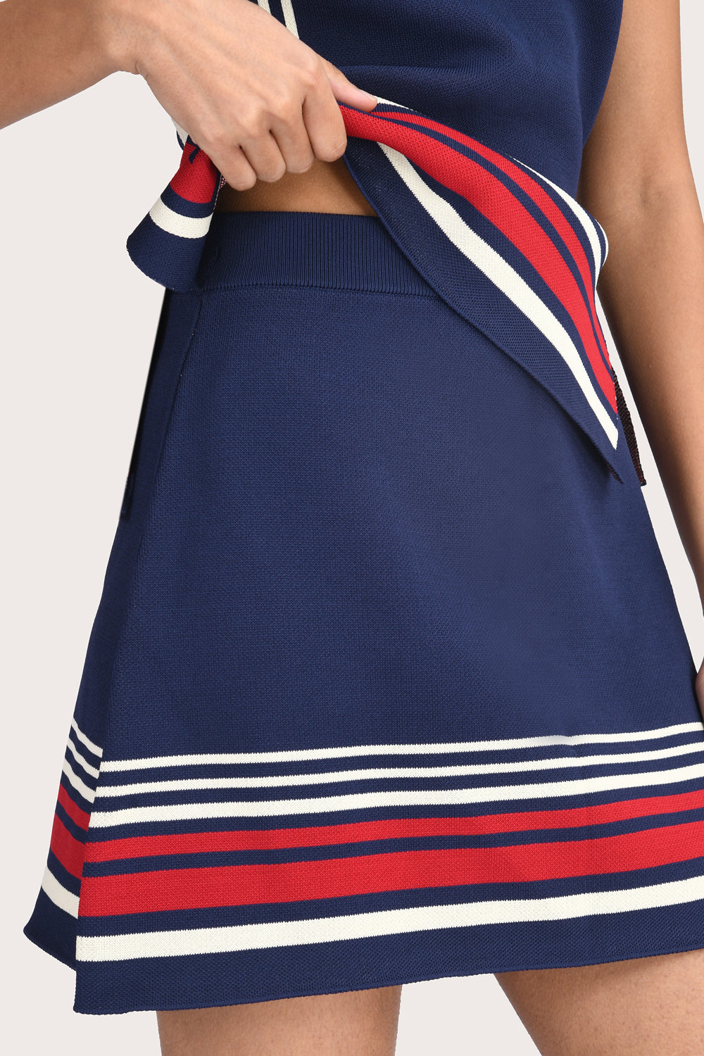 The Georgia Mini Skirt in Navy is a modern essential featuring a fitted silhouette and a playful mini length. Knit fabrication, this skirt is designed to sit mid-waisted before falling into a flattering A-line silhouette. Style it with the matching Georgia Top for a tonal look.