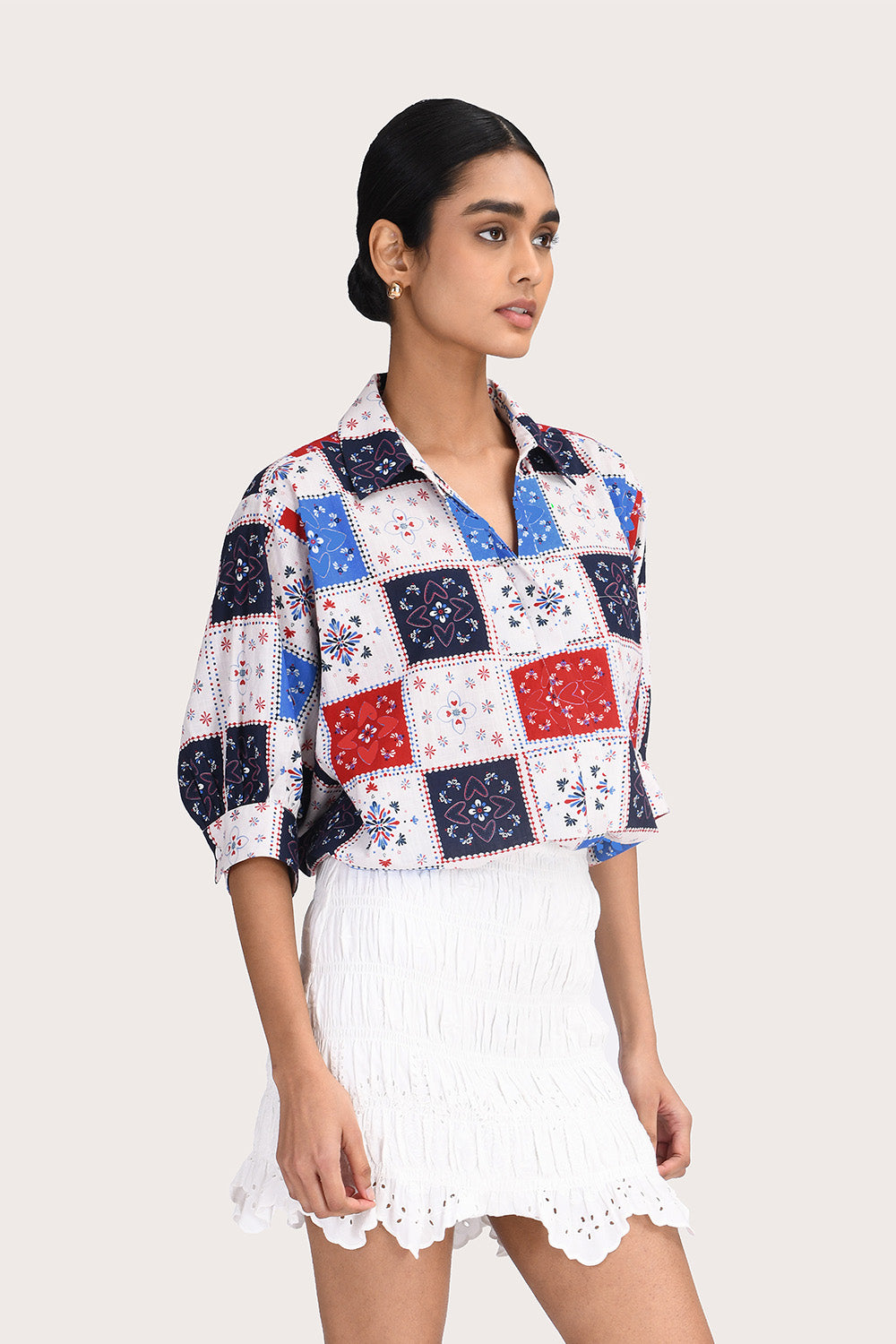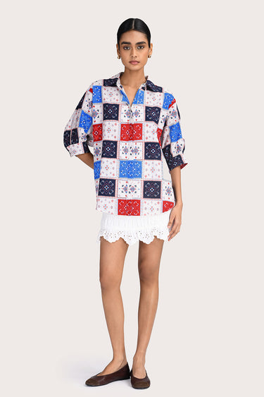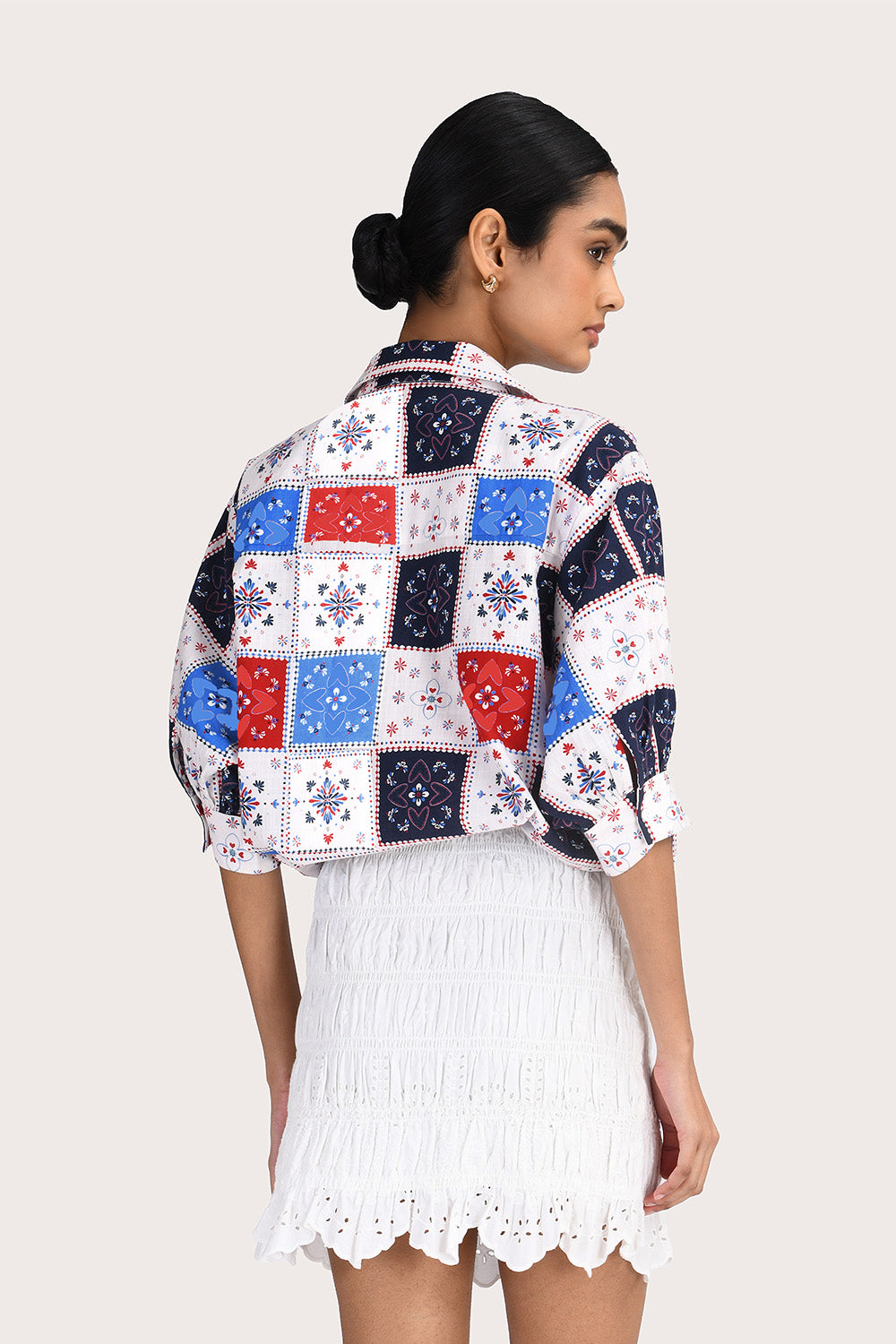 The Myra Mini Skirt in White features a fully elasticised smocked bodice for a comfortable, flexible fit. This mini-length style is crafted from 100% cotton poplin with delicate white broderie detailing and a scalloped hem.