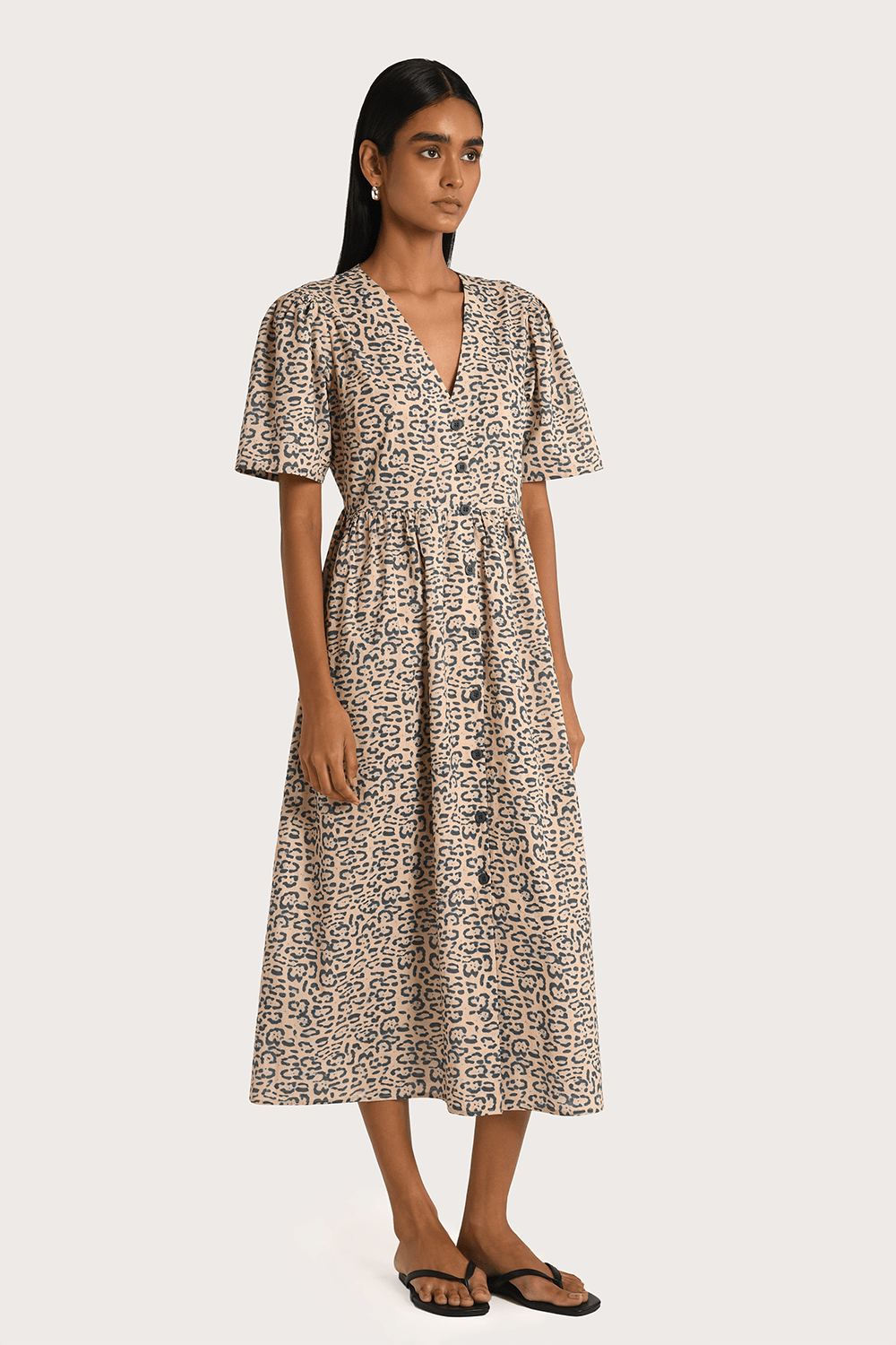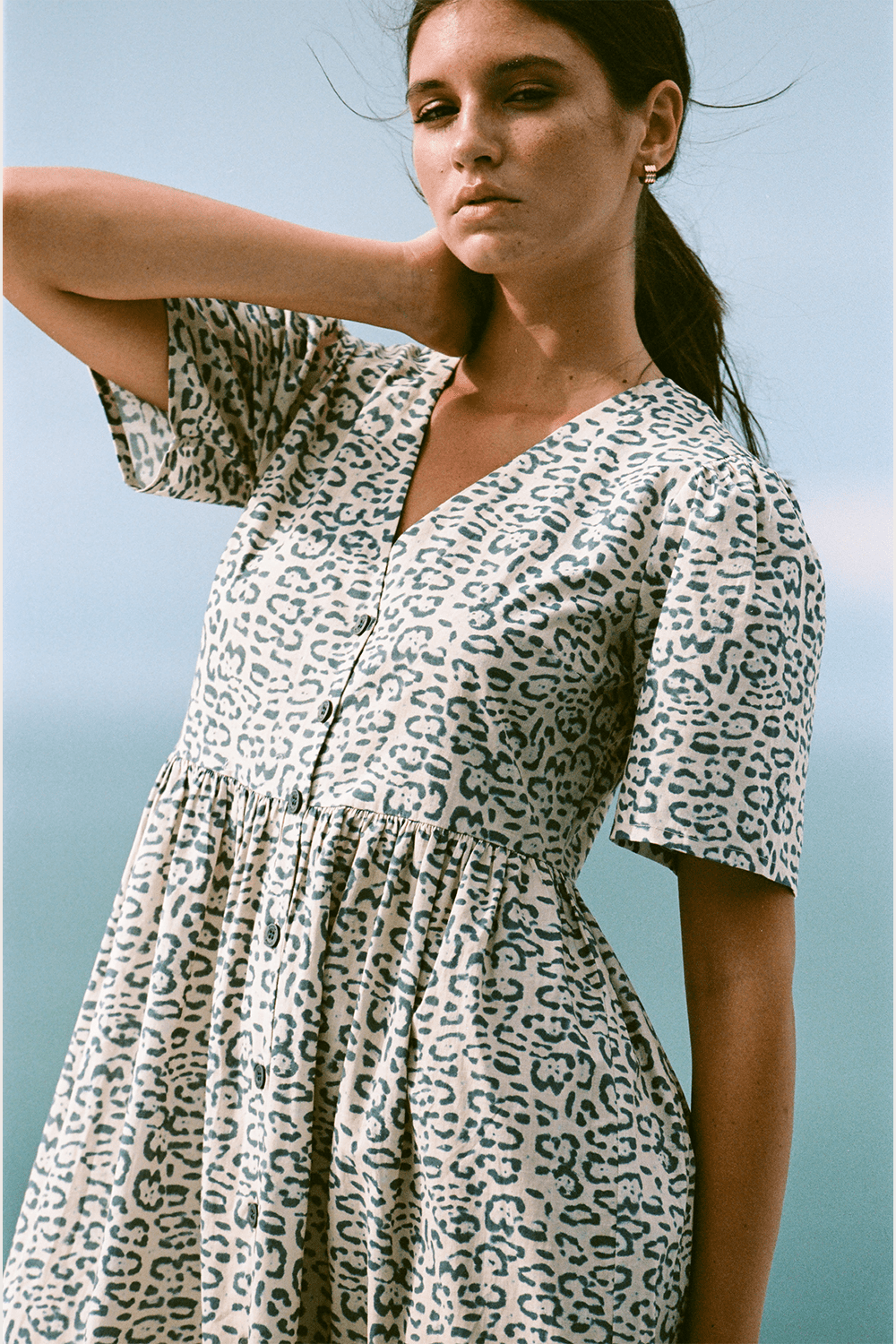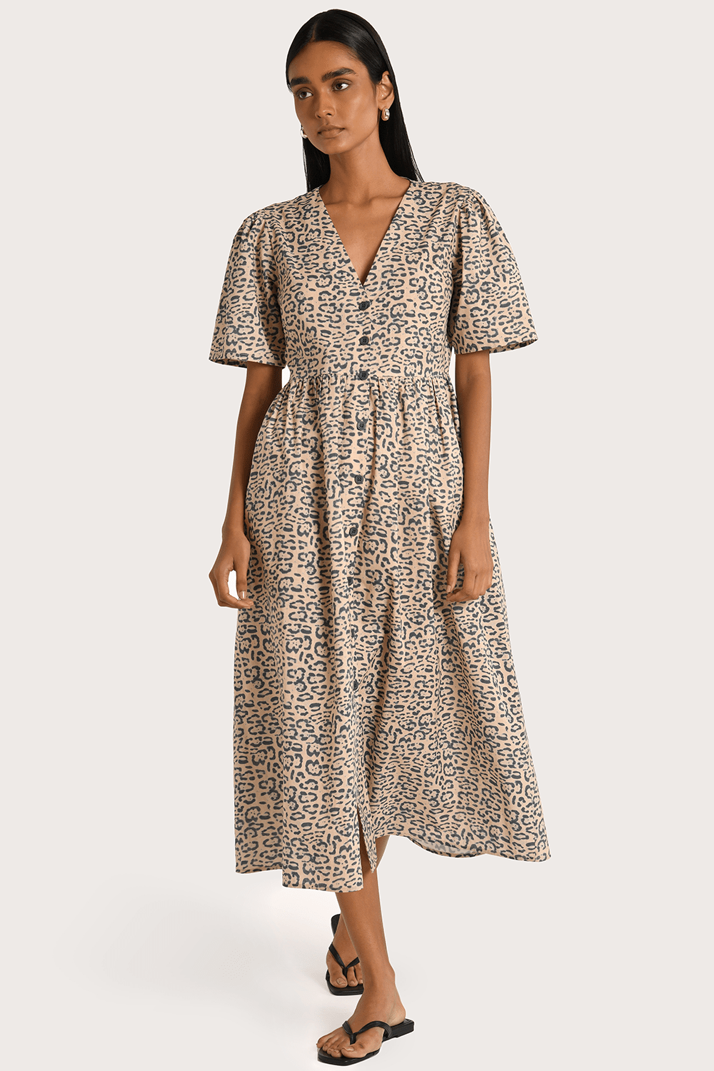 Crafted from a soft cotton blend, the Elena Midi Dress is an effortlessly stylish midi with a button-down front and relaxed short sleeves. In this seasons must have print, it's perfect for easy summer dressing and seamlessly transitions from day to night.