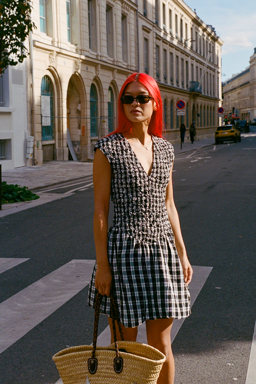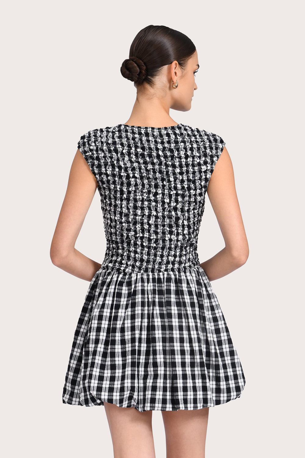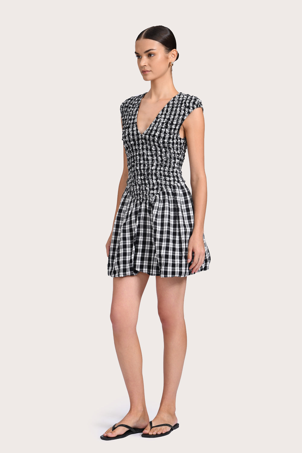 The Florencia Mini Dress in Midnight Check is your new go-to for warmer days ahead. Designed in 100% cotton, it features a deep V neckline with a shirred bodice for an easy fit. It softly gathers at the waist before falling to an A-line skirt with a bubble hem.