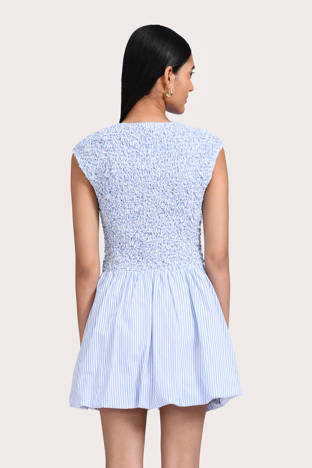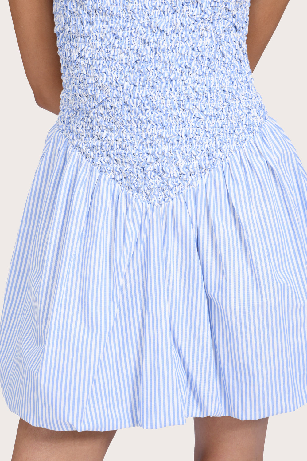 The Florencia Mini Dress in Seine Stripe is your new go-to for warmer days ahead. Designed in 100% cotton, it features a deep V neckline with a shirred bodice for an easy fit. It softly gathers at the waist before falling to an A-line skirt with a bubble hem.