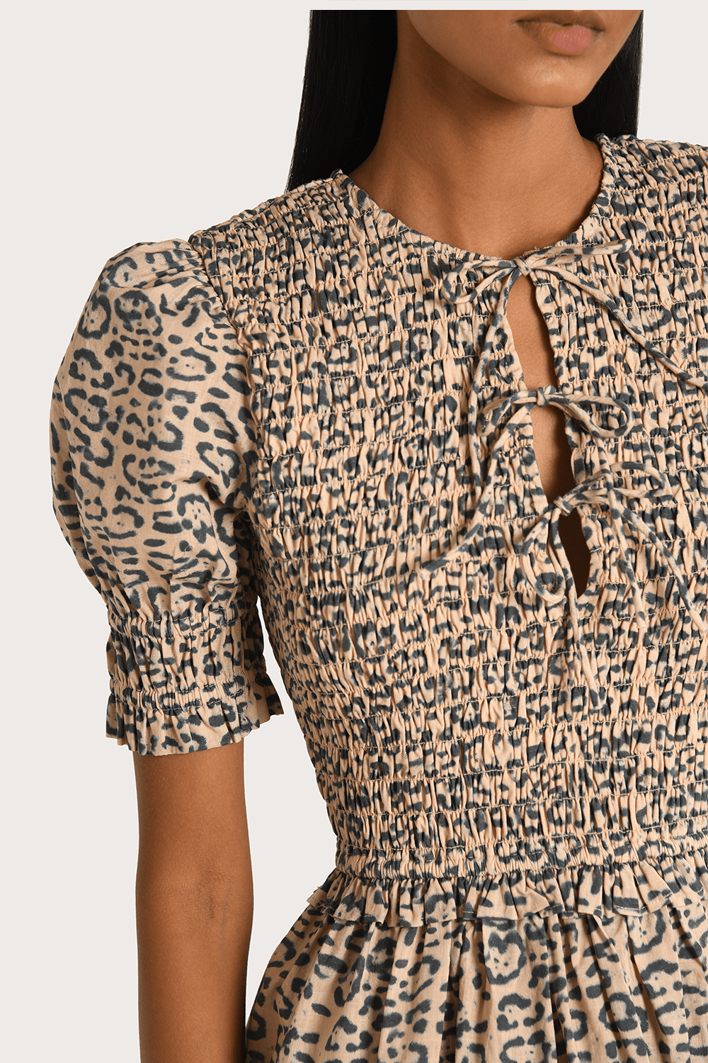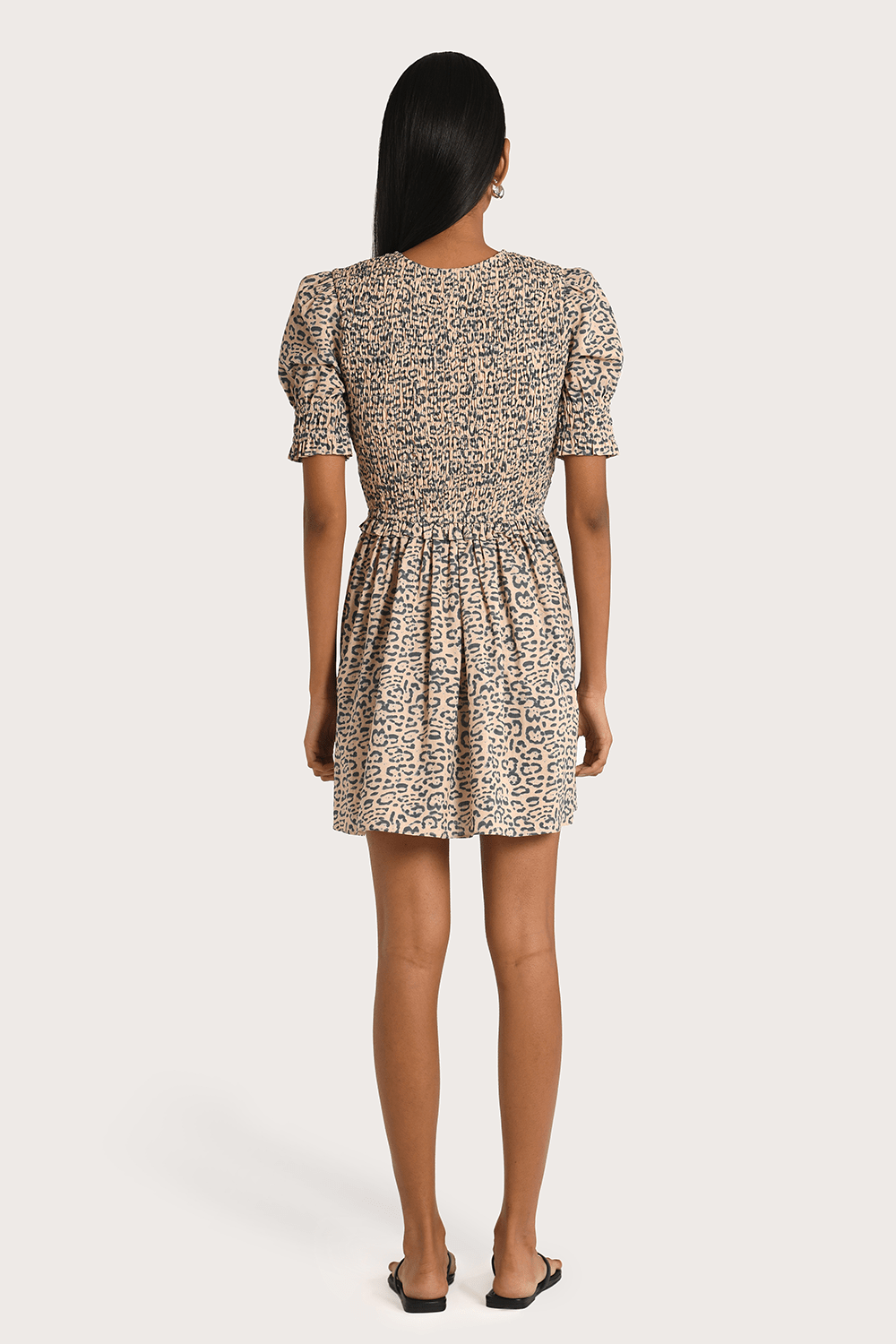 Introducing the Josefina Mini Dress in our must have animal print. This mini features a shirred bodice for an easy fit with feminine tie closures and a puff sleeve. It's fitted shirred bodice falls into a flattering A line mini skirt. Perfect with flats or heels, this new favourite mini will see you through all your summer events.