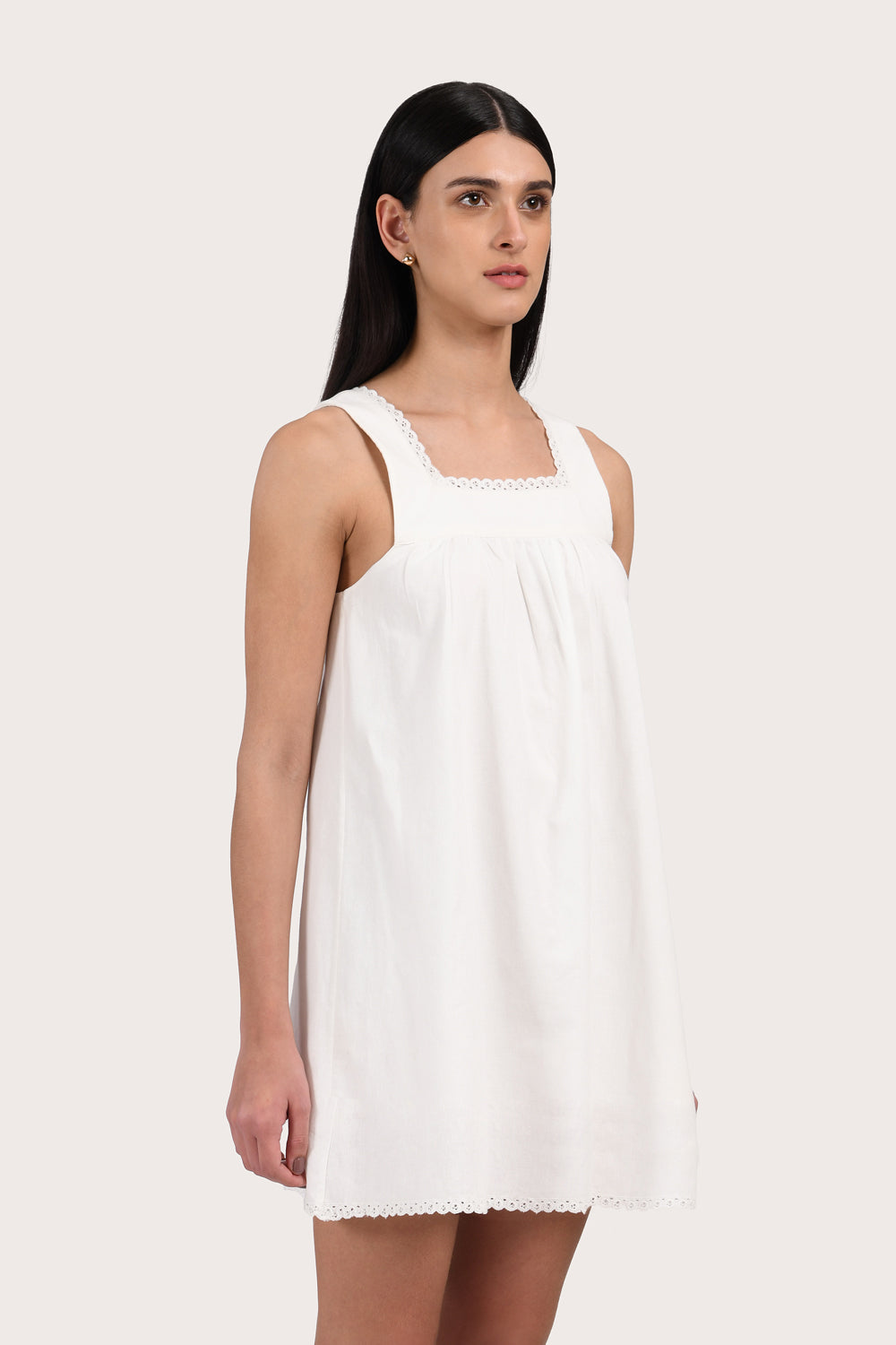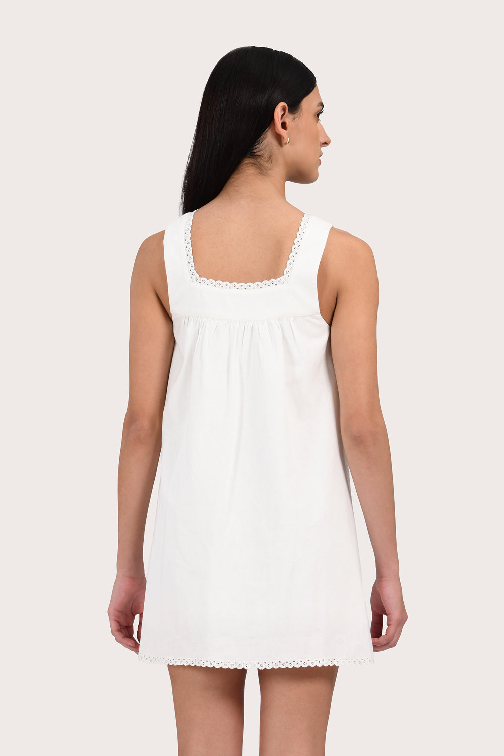 The Marisol Mini Dress in White is a sundress with endless wearability. Featuring a square neckline and a floaty silhouette, pair it with a sandal or ballet flat for sun-drenched days and balmy evenings.